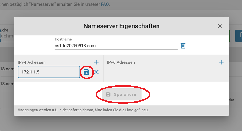 Änderungen an Ihren eigenen Nameservern