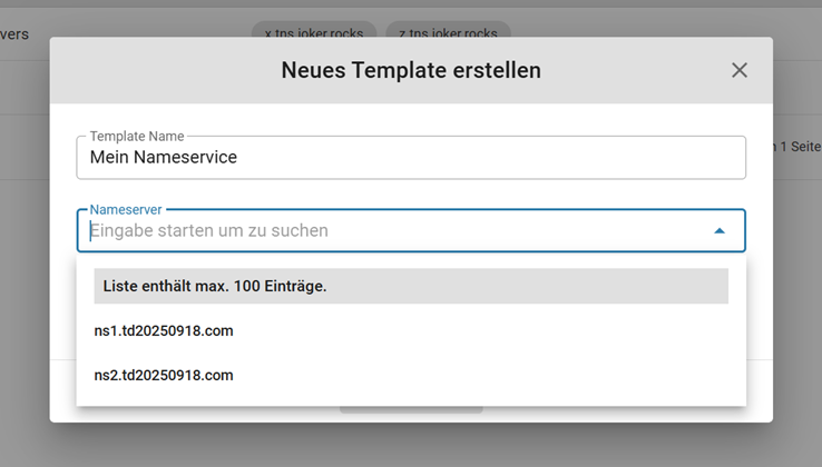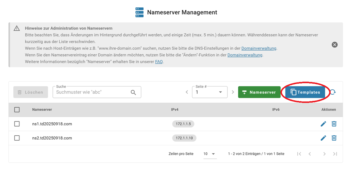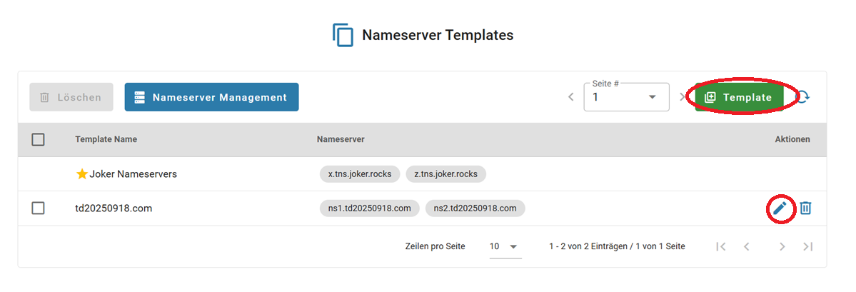 - Eine Standardvorlage basierend auf Joker-Nameservern wird automatisch bereitgestellt.