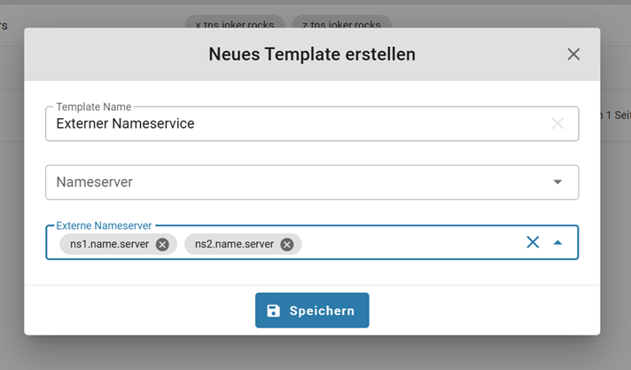 4. Oder fügen Sie Ihrer Vorlage manuell externe Nameserver hinzu: