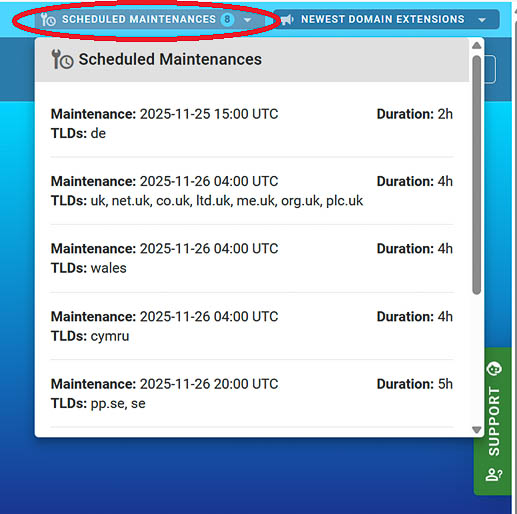 This update helps customers anticipate possible service interruptions for specific TLDs, ensuring tasks such as urgent renewals can be completed ahead of time.