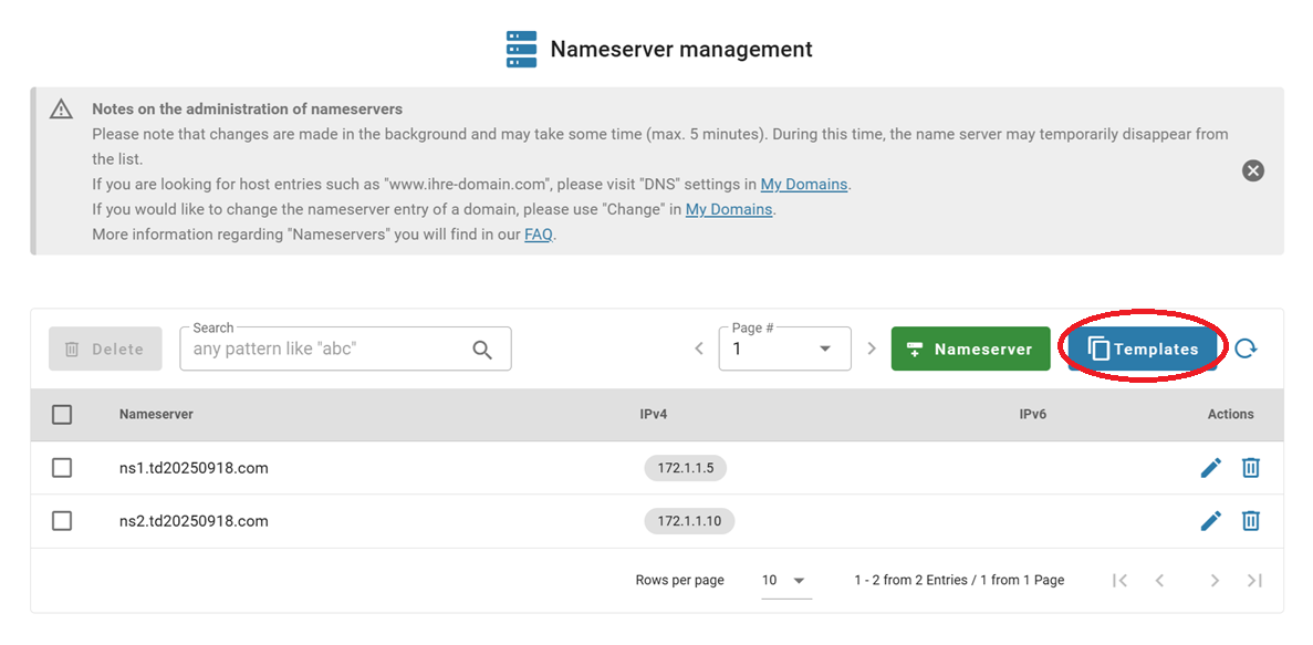Nameserver Templates